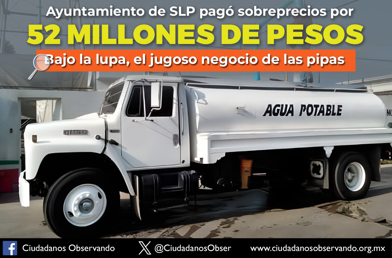 Ayunt de SLP pago 52 mdp en sobreprecios en pipas 2024