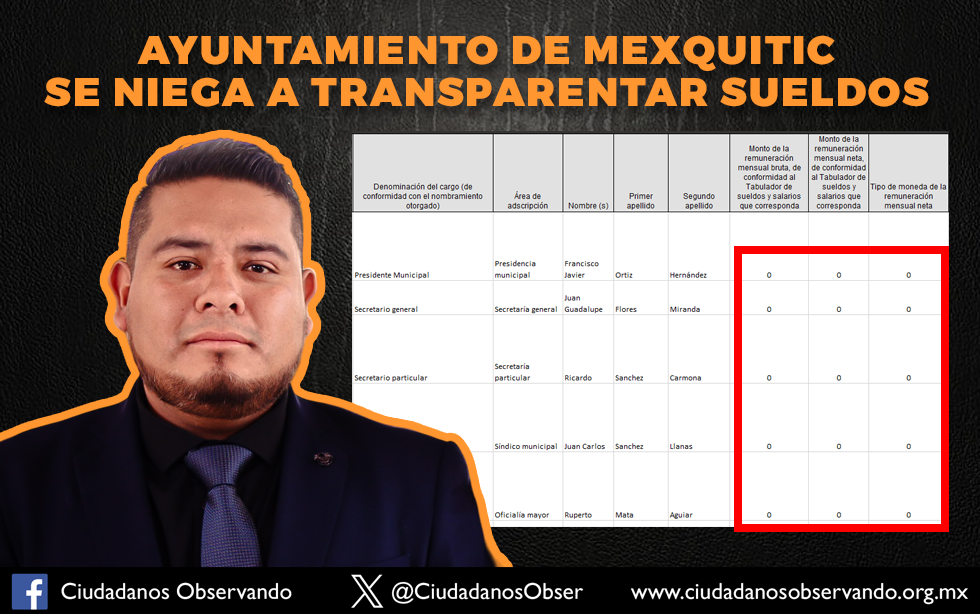 Ayuntamiento de Mexquitic se niega a publicar los sueldos