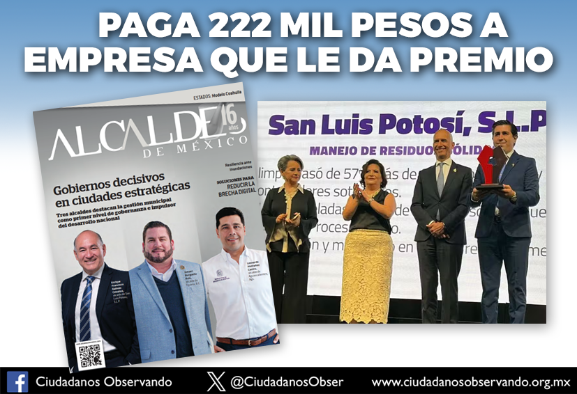 AYUNTAMIENTO DE SLP PAGA 222 MIL PESOS Y RECIBE PREMIO