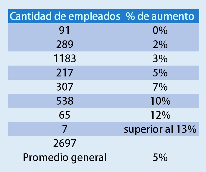 En contraste, la distribución general de los aumentos fue la siguiente: