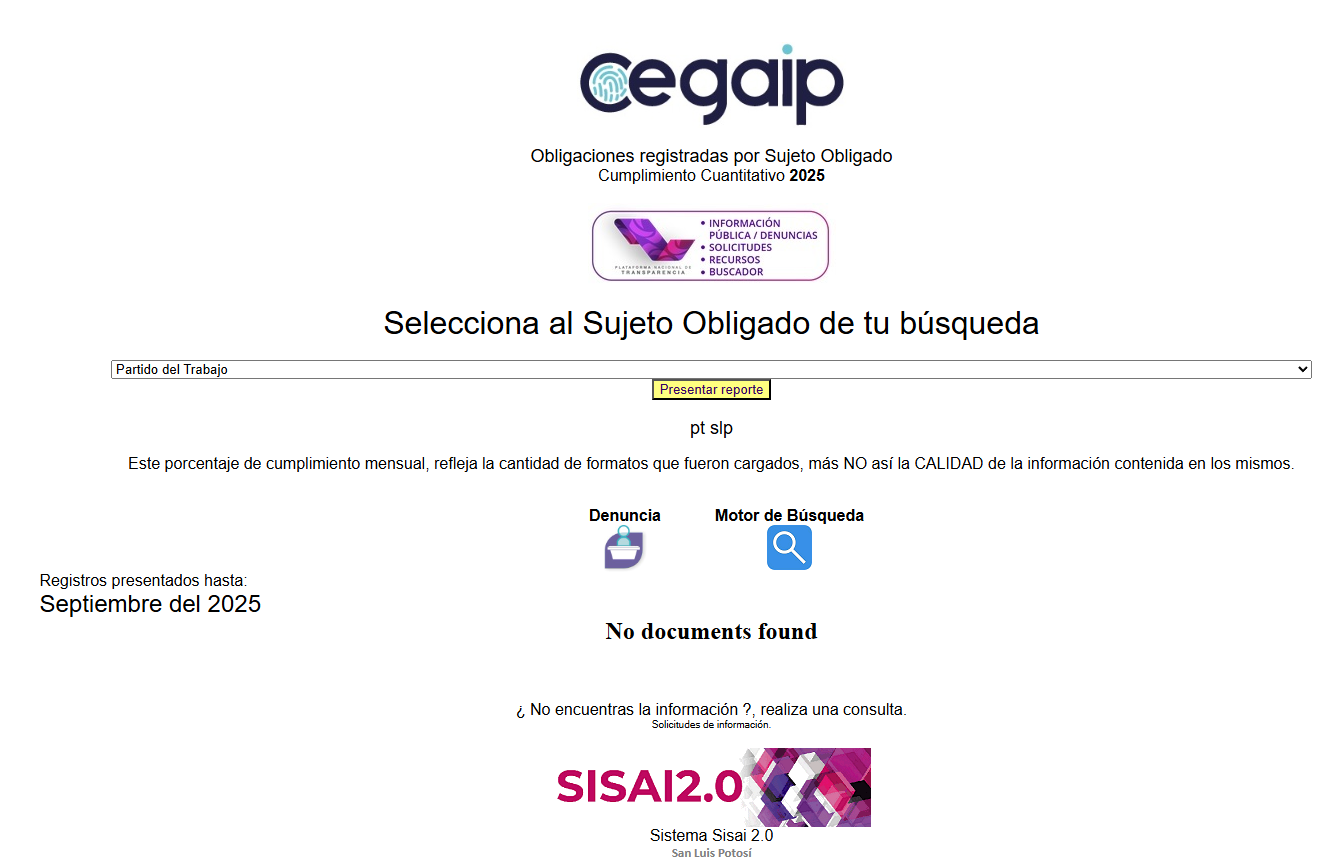 El Partido del Trabajo en San Luis Potosí se sigue negando a publicar en qué y cómo se ha gastado el dinero público y lleva todo este 2025 en la opacidad, pero con la total complicidad de la irresponsable Comisión Estatal de Garantía de Acceso a la Información Pública del Estado de San Luis Potosí (CEGAIP).