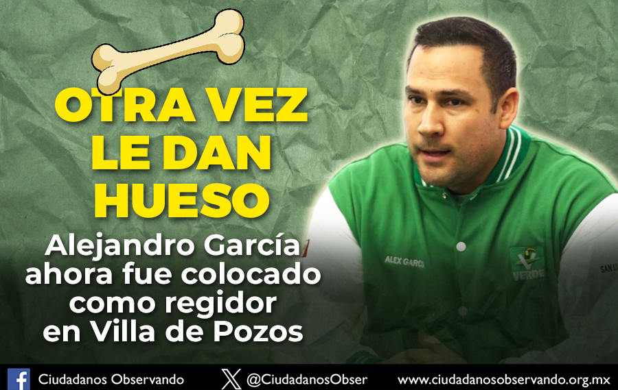 En ese reparto sucio, el Partido Verde colocó a Alejandro García como uno de sus operadores. No es casualidad. Villa de Pozos es hoy un botín político y económico altamente codiciado por el grupo en el poder, y para eso se envía a perfiles como este, con historial de lealtades y poca rendición de cuentas.