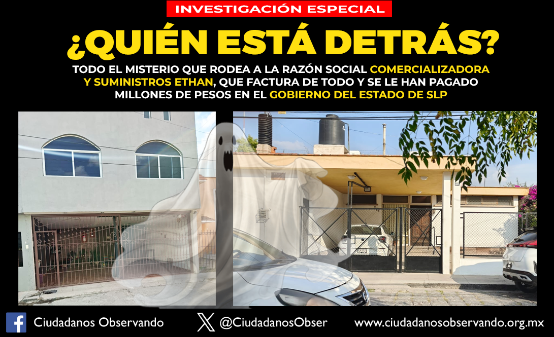 La utilización de este tipo de razones sociales, muestran diversas anomalías y situaciones con fuerte tufo a corrupción, que generan demasiadas dudas de lo que está realmente detrás. Igualmente, cuestionable que Luis Gerardo Loredo Vargas, integrante de la Secretaría Ejecutiva del Sistema Estatal Anticorrupción esté ligado a Comercializadora y Suministros Ethan que recibe pagos millonarios del gobierno al que se le debe vigilar con lupa y no tenerlo como cliente, con una sospechosa fachada.