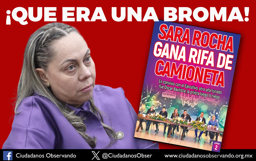 ¿En verdad esta diputada cree que la ciudadanía y los medios de comunicación con tontos y que se puede burlar de esta burda forma? Tenemos muy claro, por qué tuvo que salir a intentar componer la plana, pero le fue peor. Todo lo que está detrás de la rifa de dos camionetas Nissan, modelo Kicks 2025 con un valor superior al medio millón de pesos cada una y de otros regalos en la reunión con diputados y el mandatario estatal, ha sido confirmada por otros legisladores que estuvieron presentes en el evento del pasado martes. Incluso, se sabe que otro “suertudo” fue el diputado federal Óscar Bautista, que por su parte se escabulló de los medios.